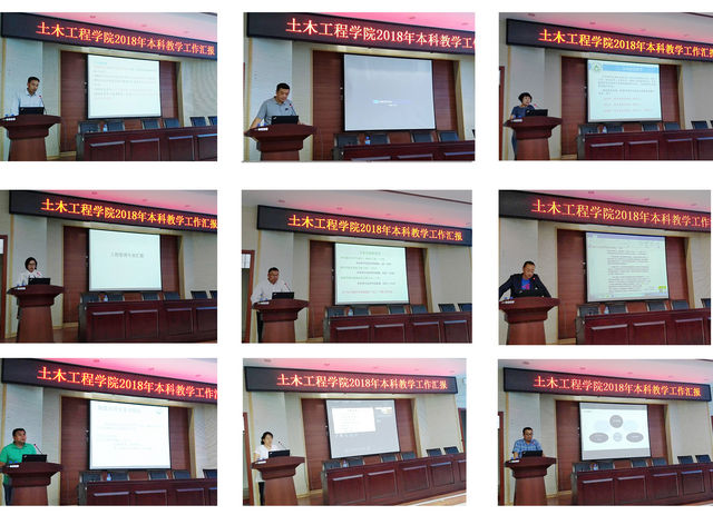 学院4个专业(6个方向)、2个基础教研室和大创中心共9位负责人围绕专业介绍、过去一年专业发展现状及存在问题、针对“成都宣言”探索新形势下本科教育教学新理念三个方面,逐一以PPT形式对2017-2018学年度的本科教学工作做了总结和汇报。程东辉副院长肯定了各位老师在过去一学年的成果和业绩,并针对本学期教学工作进行了部署。最后程培峰院长作了总结发言,肯定了各位主任的辛勤付出,并希望各位老师再接再厉,以“成都宣言”为基础继续做好本科教学工作。