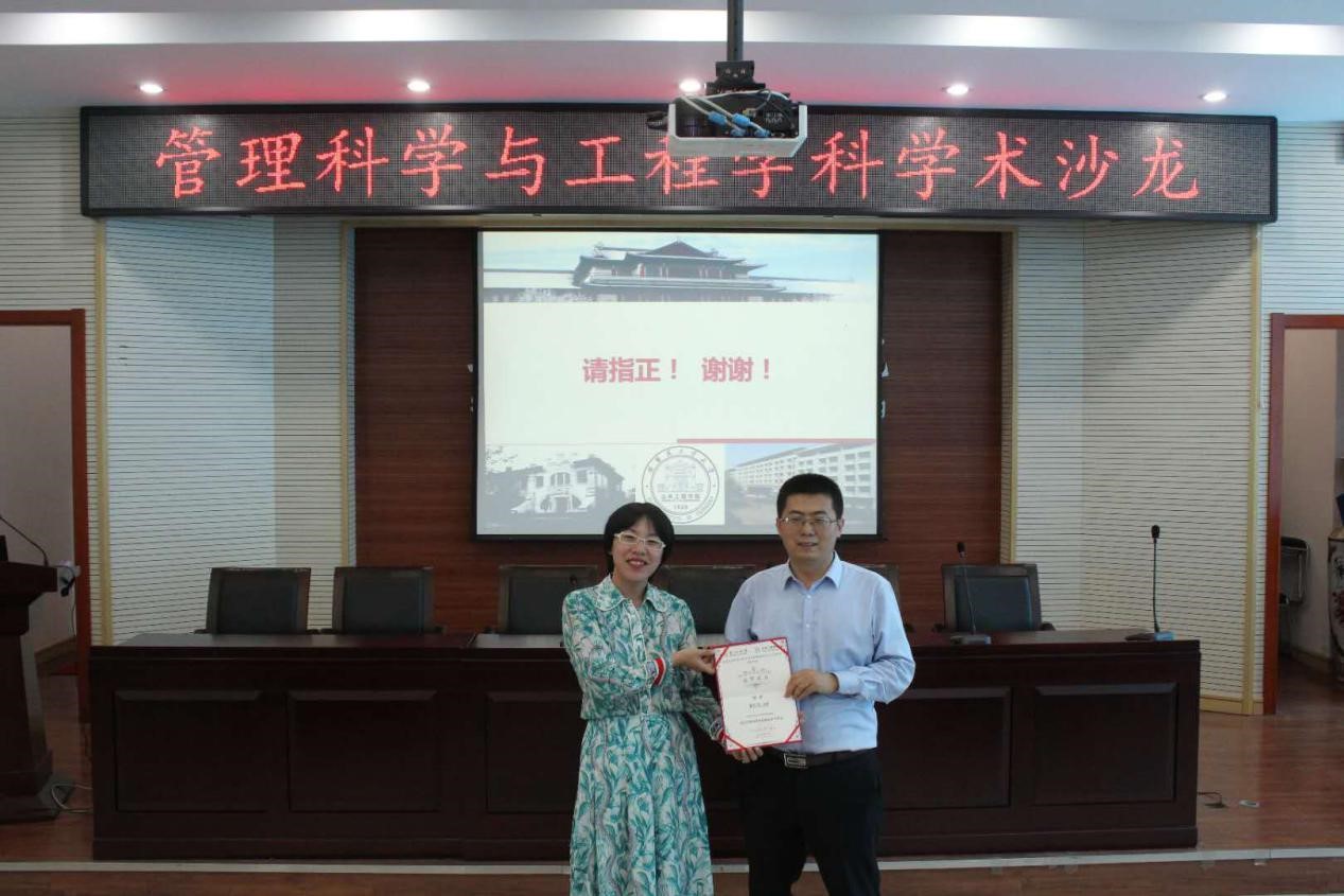 最后,刘洁老师为翟长海教授颁发了荣誉证书。至此,管理科学与工程学科第4期沙龙圆满结束。(图片作者:谭宪宇;文字作者:工程管理系学生会)