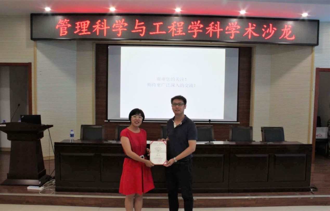 最后,刘洁老师为王昊博士颁发荣誉证书。至此,本学期六期学术沙龙圆满结束。下学期还将继续举办更高质量的管理科学与工程学科学术沙龙,欢迎广大师生前来聆听。(文字:工程管理系学生会;图片:谭宪宇)