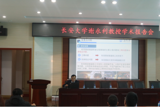 下午谢永利教授主要从研究背景、软岩隧道荷载作用机制、新型隧道衬砌、新型工法尝试及相关对策等方面对软岩隧道工程问题进行了分析。报告针对软弱围岩隧道现有工法的“力不从心”、“得不偿失”等问题,提出了软岩隧道微扰动掘进工法设计。针对黄土隧道存在的围岩压力计算偏差和初支系统偏弱的设计问题,以及黄土隧道经常出现渗水漏水、衬砌开裂、塌方和地表变形等工程问题提出了黄土隧道新型衬砌结构的设计方法。学术报告生动活泼,师生们都深受启发,获益匪浅,同时谢永利教授幽默儒雅的学者风范和严谨的科学态度也给师生们留下深刻的印象。