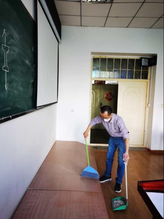 学院高度重视并严格落实教职工的安全防护工作,学院办公室为教工、党员志愿者准备好清扫、消毒工具及防护用品。此次卫生消杀工作中,学院教职工对各自所负责区域进行全面清扫、消毒,公共区域由教工党员志愿者负责。他们干劲十足、工作有序,分批次、分区域对学院进行卫生消杀工作,做到了卫生消毒全覆盖。