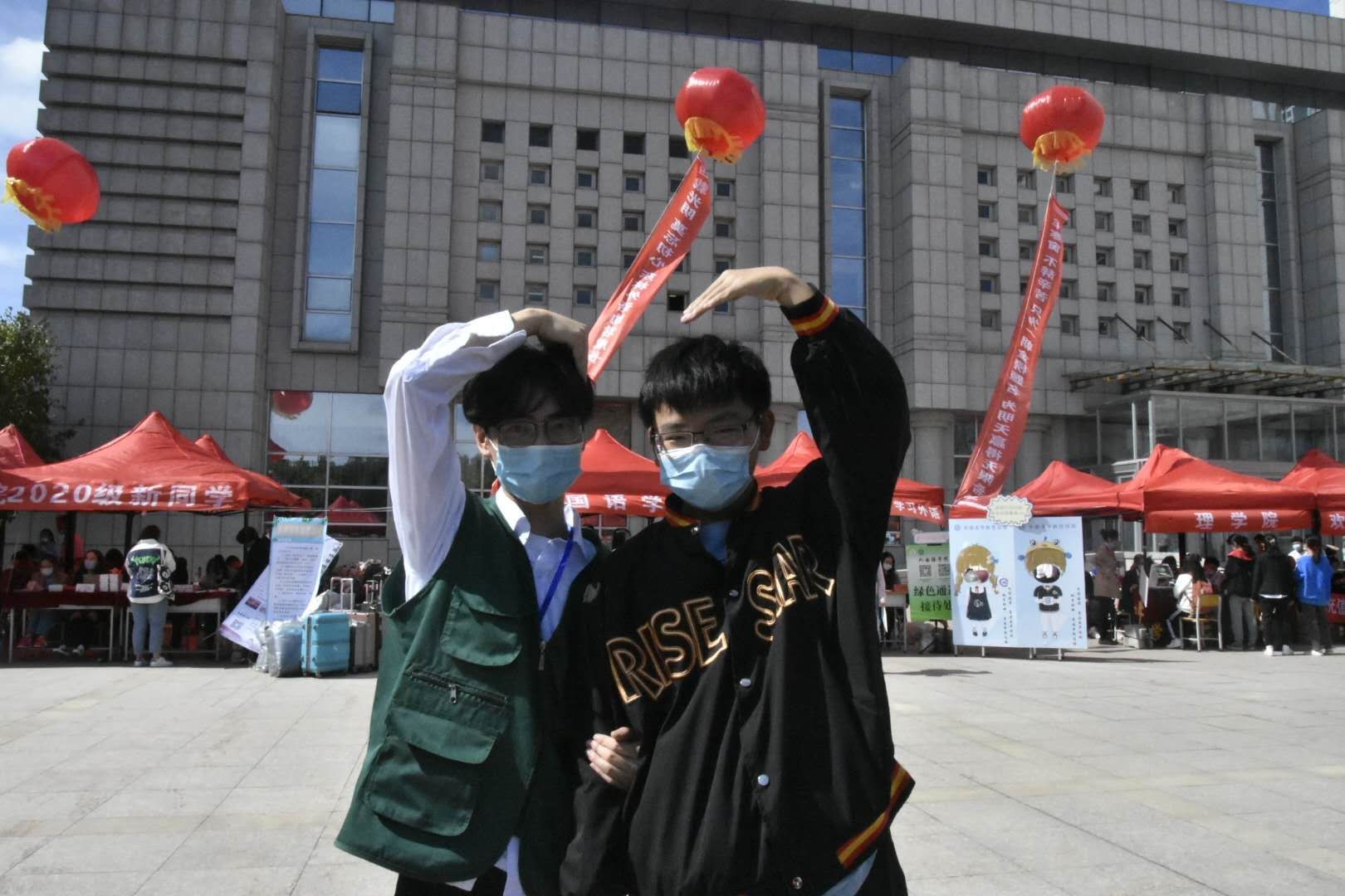 当你穿过核酸检测区,来到一栋高大明净的教学楼——文博楼前