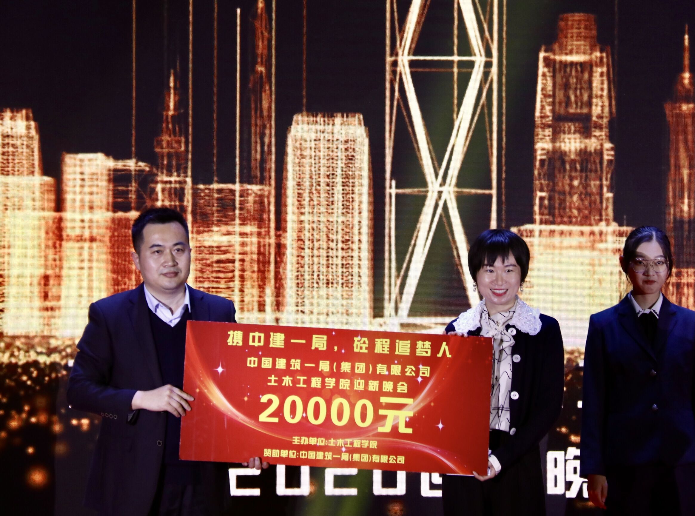 莅临此次晚会的嘉宾有学校就业与合作发展处处长王春海,土木工程学院院长程培峰,土木工程学院党委书记李洪峰,中建一局华江公司董事会秘书、人力资源部经理许宪阳,学校校友办副主任于纪航,学校学生工作部副部长张磊,学校团委副书记宋天宇、乔恩杰,土木工程学院副院长程东辉、王立峰,土木工程学院党委副书记孙维国,土木工程学院团委书记王乙行等。各位嘉宾、老师与同学们欢聚一堂,共话青春梦想。院长程培峰,党委书记李洪峰,2020级辅导员唐金栋及代班寄语20级新生,希望同学们更快的适应大学生活,志存高远,砥砺前行。同时,2020级萌新们的家长也以视频的方式为我们送来了祝福。最后要特别感谢中国建筑一局(集团)有限公司对此次晚会的独家赞助。