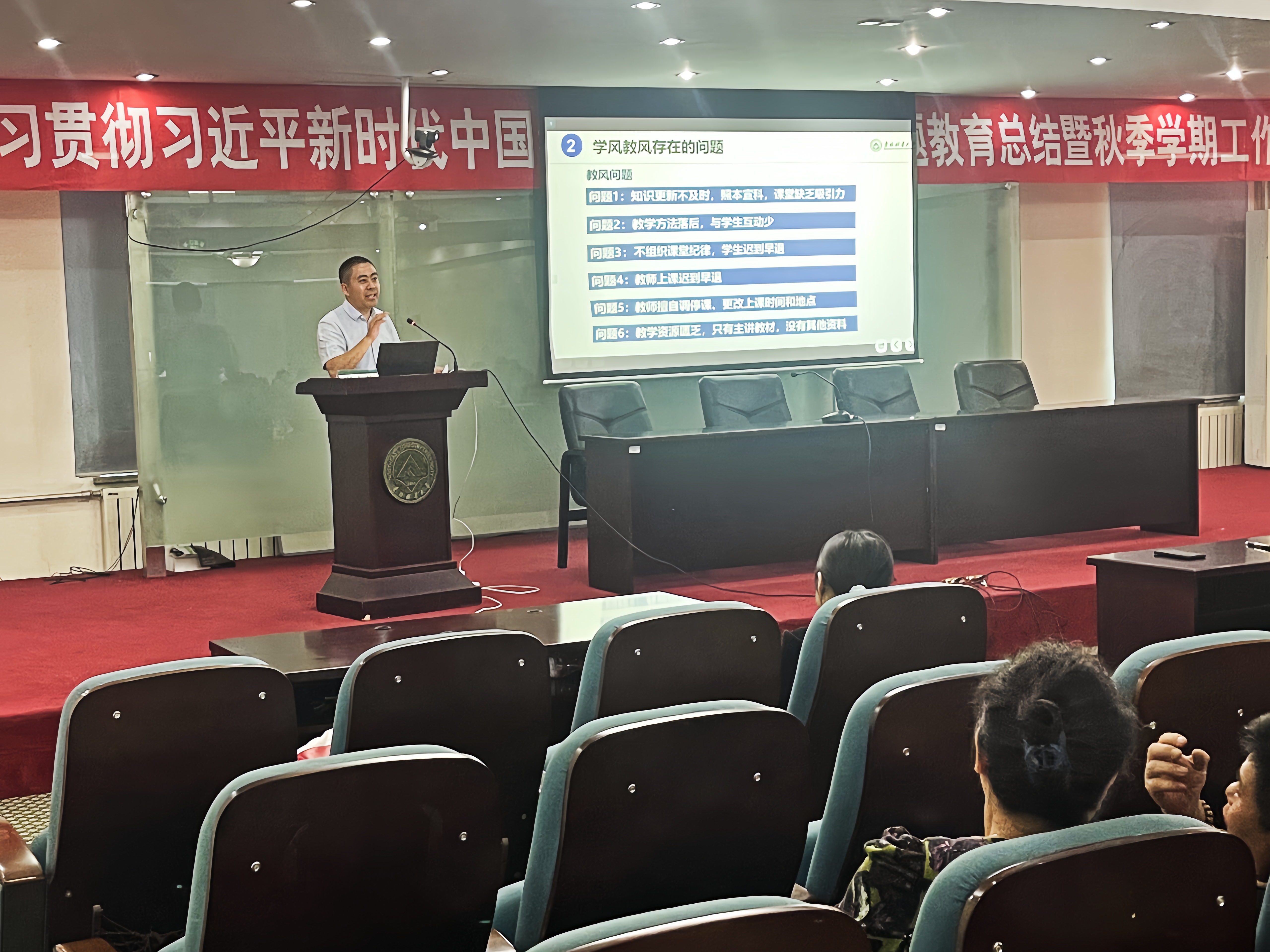 会上,谢启芳院长以团结凝共识,奋斗促发展为中心思想。首先从专业学科调整、学院组建基本完成、学院架构基本形成、高质量发展总体方案基本形成等几方面总结上学期工作情况。然后从安全工作、学科建设工作、人才培养质量提升工作、激励机制、国家自然(社会)科学基金申报工作实施方案等工作进行秋季学期重点工作部署。