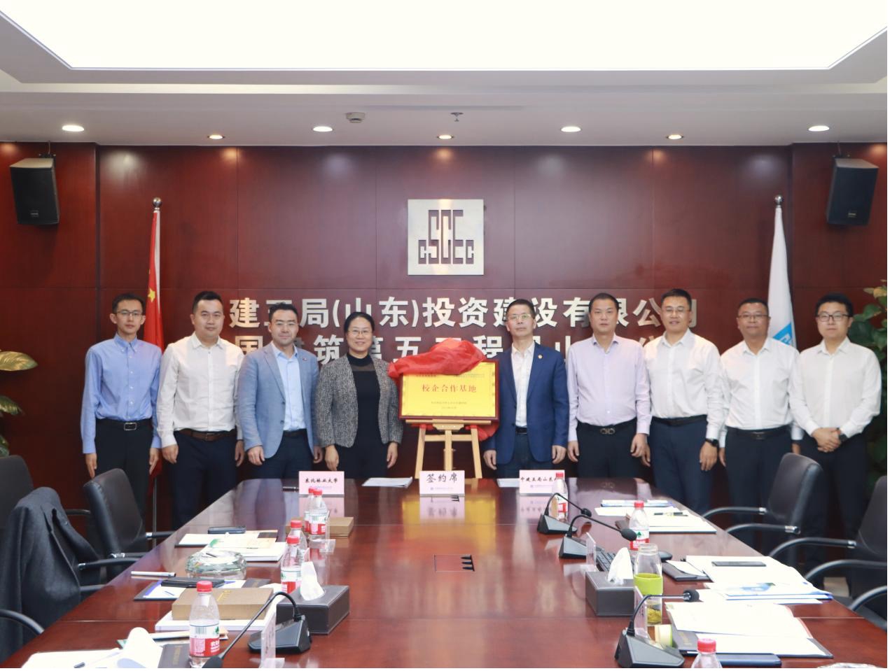 宋吉红与中建五局山东公司负责人为校企合作基地揭牌