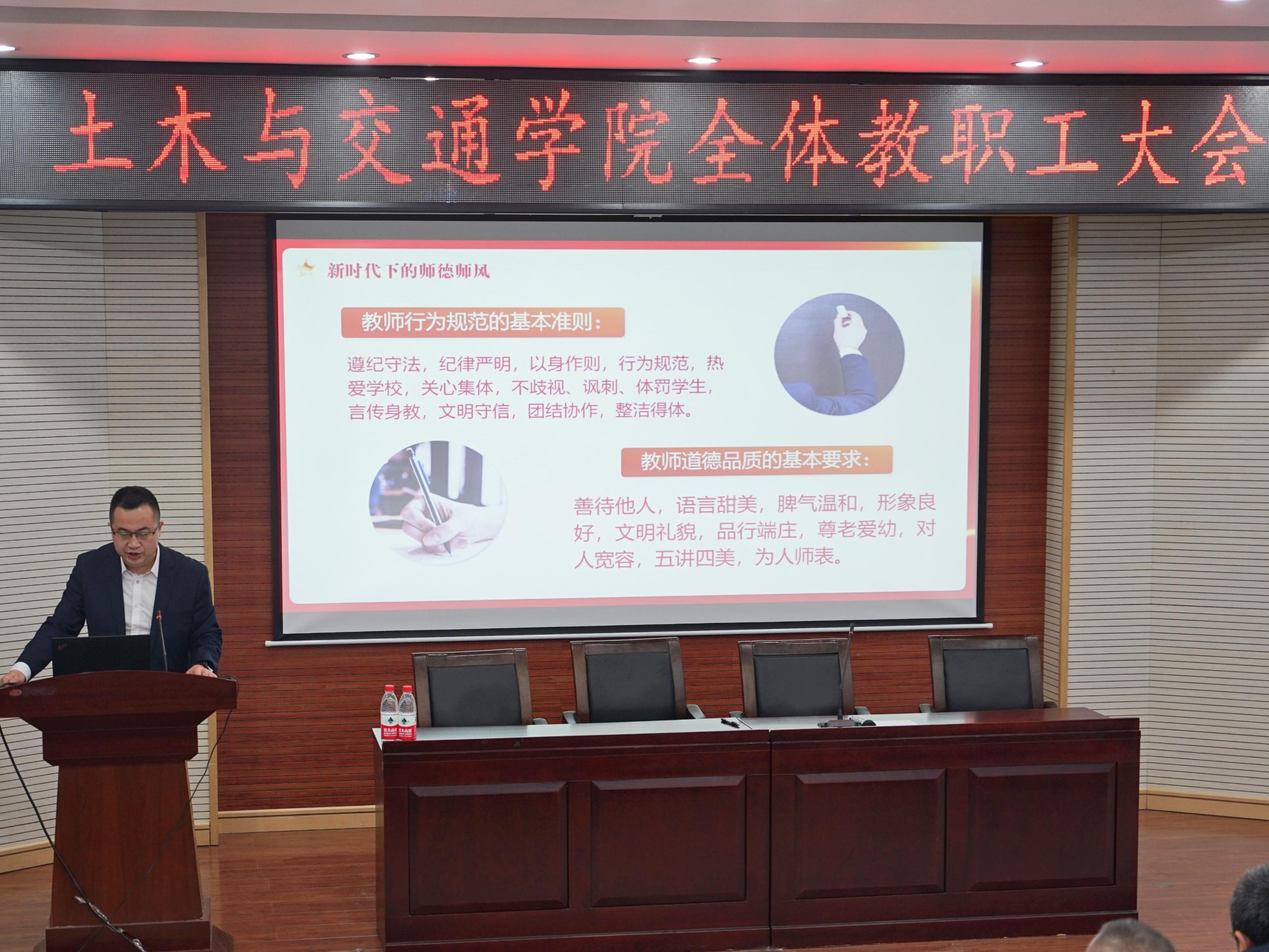学院党委副书记、副院长孙维国进行了高校师德师风和廉洁建设警示工作的汇报。从新时代下师德师风;违反师德师风的具体表现;高校违法违纪相关案例;教师职业行为十项准则解读四个方面进行汇报。