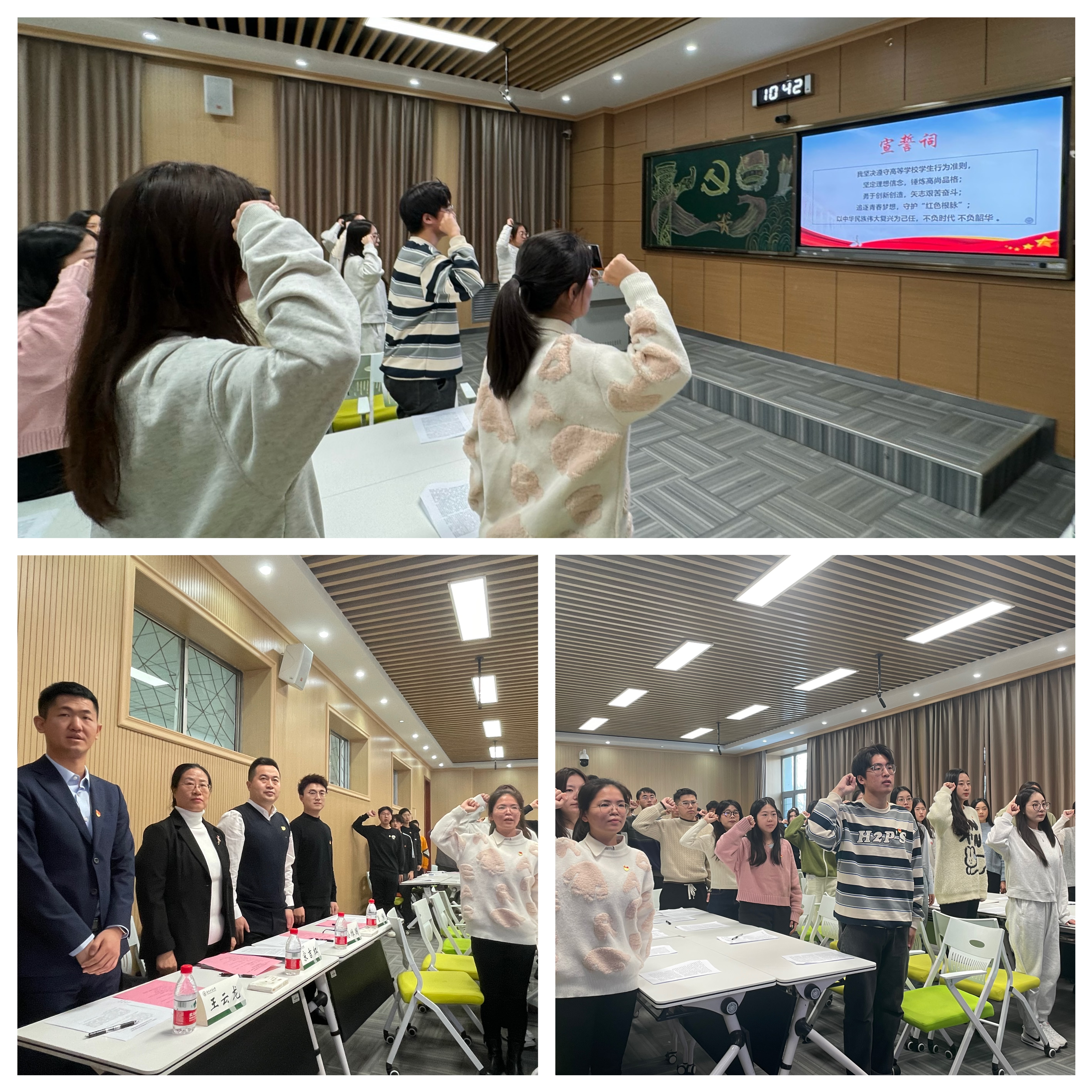 作为新时代东林学子,要做好“红色根脉”的传承人,承担起守好“红色根 脉”的时代使命。管理科学与工程研究生党支部代表胡晓铮带领全体参会人员进行宣誓,全体参会同学高举右拳,在铮铮誓言中表达东林土木交通人矢志兴林报国的无悔担当。