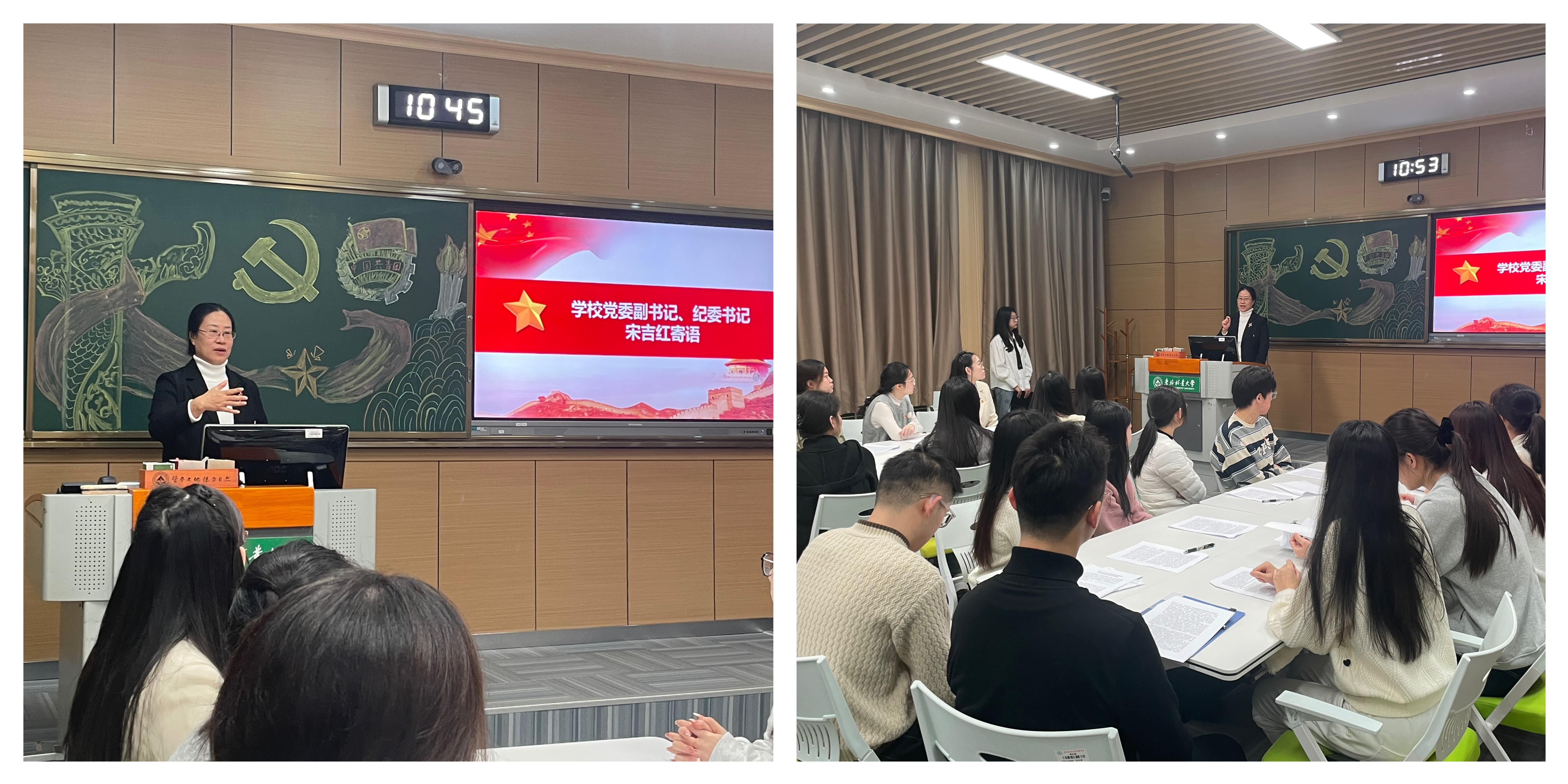 会议的最后,学校党委副书记、纪委书记宋吉红针对本次会议进行了总结并给予参会同学们提出殷切期望。她对本次“党建带团建,守住两条线”的学习会形式给予充分的肯定,同时寄语广大青年要将个人理想与国家发展结合,与实现中华民族伟大复兴结合,强化理想信念,积极响应国家号召,将青春融入民族复兴的航程中去。与此同时也要增强底线意识,提高警惕,严格要求遵纪守纪,做一名合格的新时代东林青年。