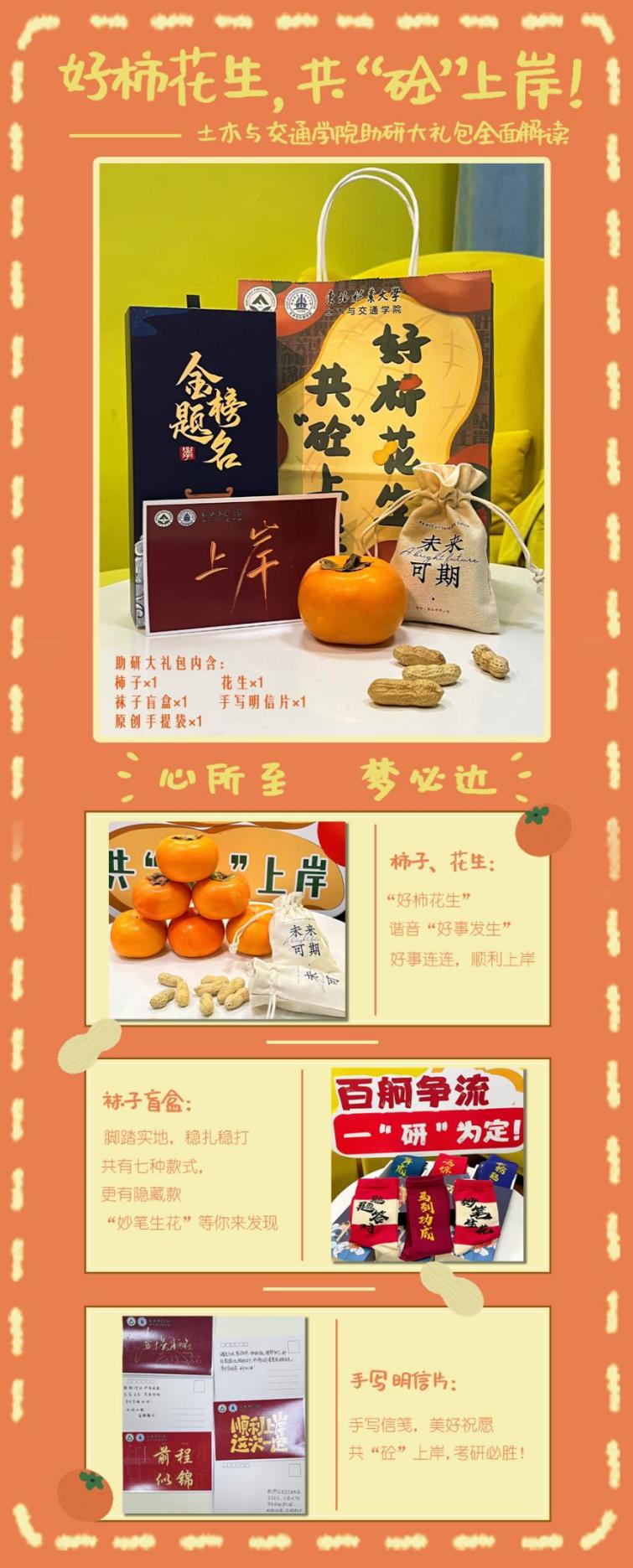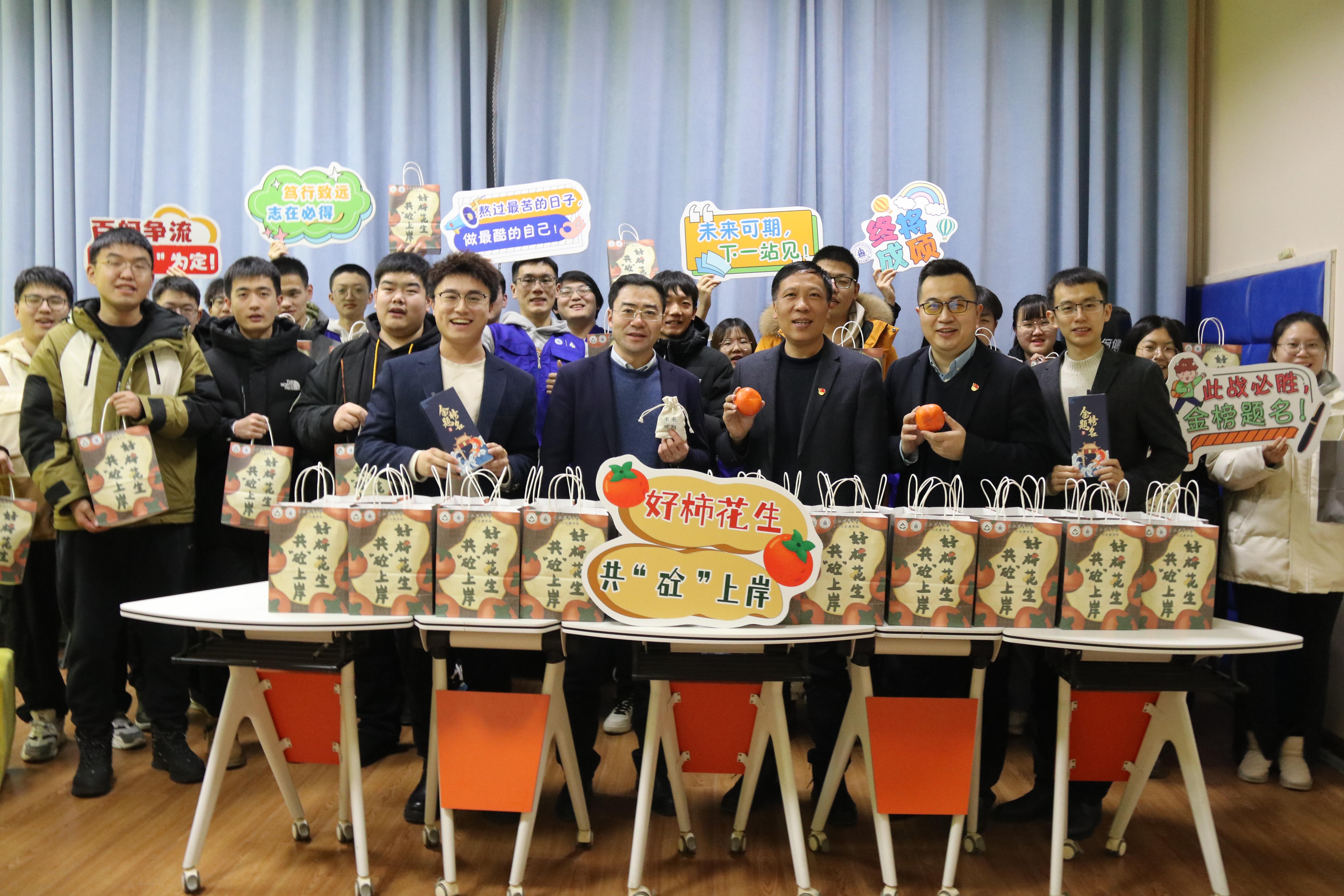 活动中学院领导共同为考研学子发放暖心“考研加油包”:一颗花生、一个柿子,象征着所有的美好都将如期而至;一双袜子是学院对于你们未来的期盼,脚踏实地、勇攀高峰。寓意深刻,为学子考研之路温情护航。一句关怀暖心间,一份祝福载厚望。考研学子们,带着这份祝福勇敢地向前冲吧!