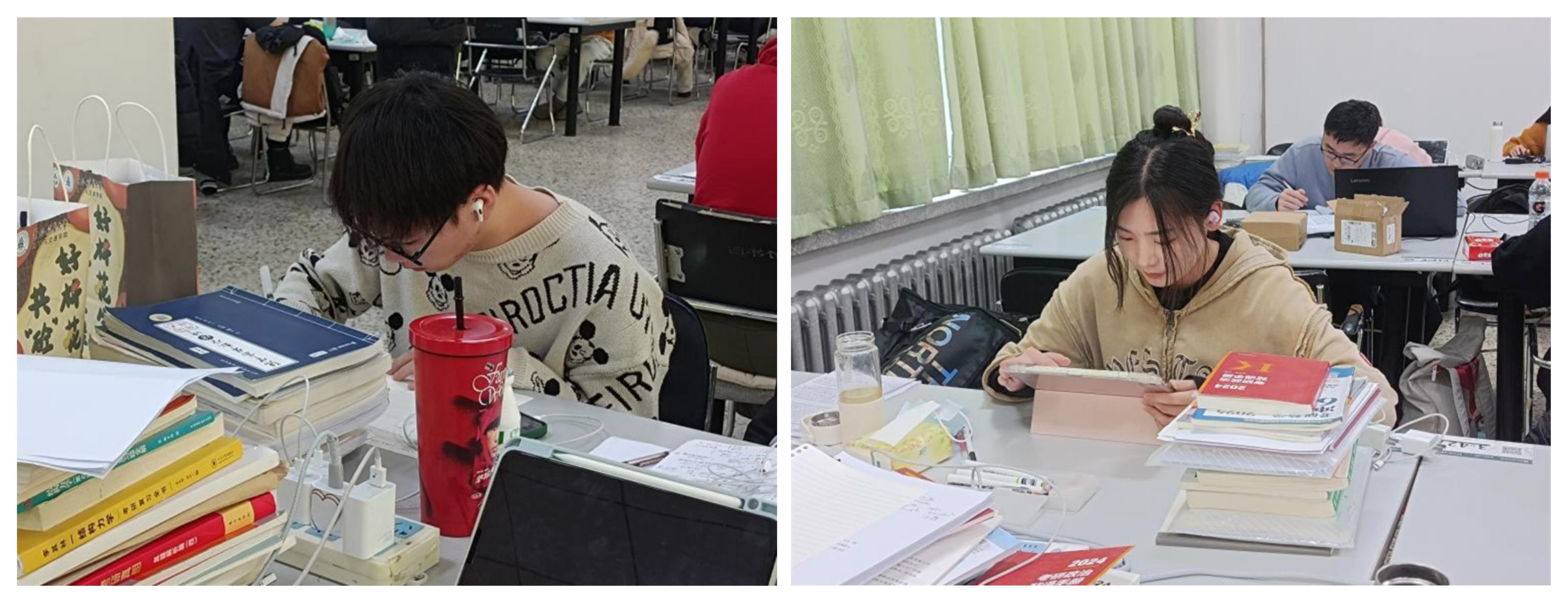 于三月春光到六月蝉鸣,从九月疾书到冬日冲刺,以笔为枪,为梦而战,一路走来他们风雨兼程,披荆斩棘。校园的每个角落都有他们为考研奋战的身影,图书馆前的朝晖夕阳、走廊间的朗朗书声,都见证着他们的努力。