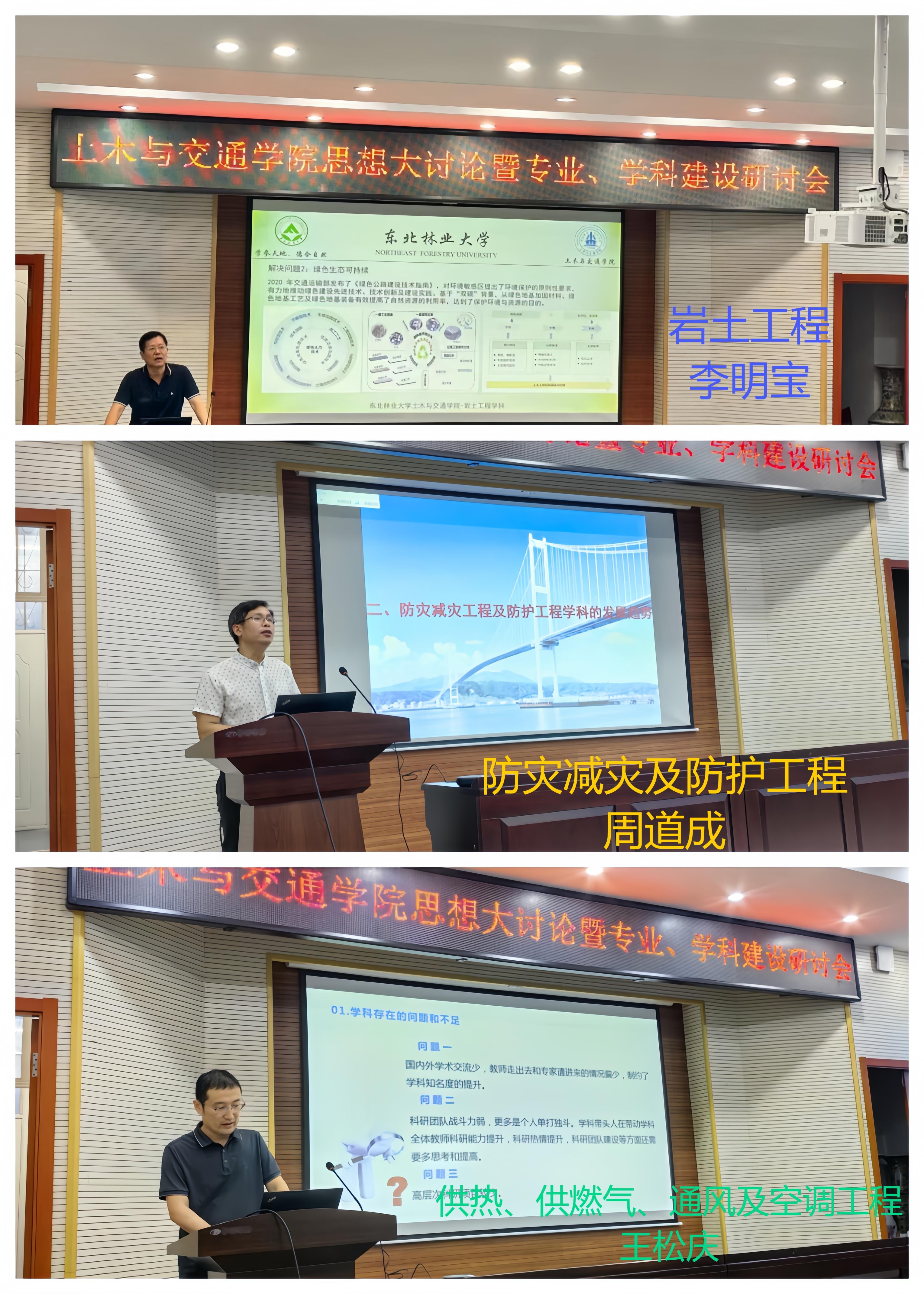 下午召开学科建设研讨会,由院长谢启芳同志主持。交通运输工程(4个二级方向)、土木工程(5个二级方向)、管理科学与工程,土木水利、交通运输和工程管理等13位学科负责人根据国家发展战略,结合了学科(专业学位类别)评估指标,分别深入分析了各自学科目前的现状,存在的问题,凝练了学科特色和学科方向,提出了学科(专业学位)近五年的发展规划,细化了目标任务,提出了有效的实施路径。每个学科(专业学位)负责人汇报后,又进行了深入的交流。