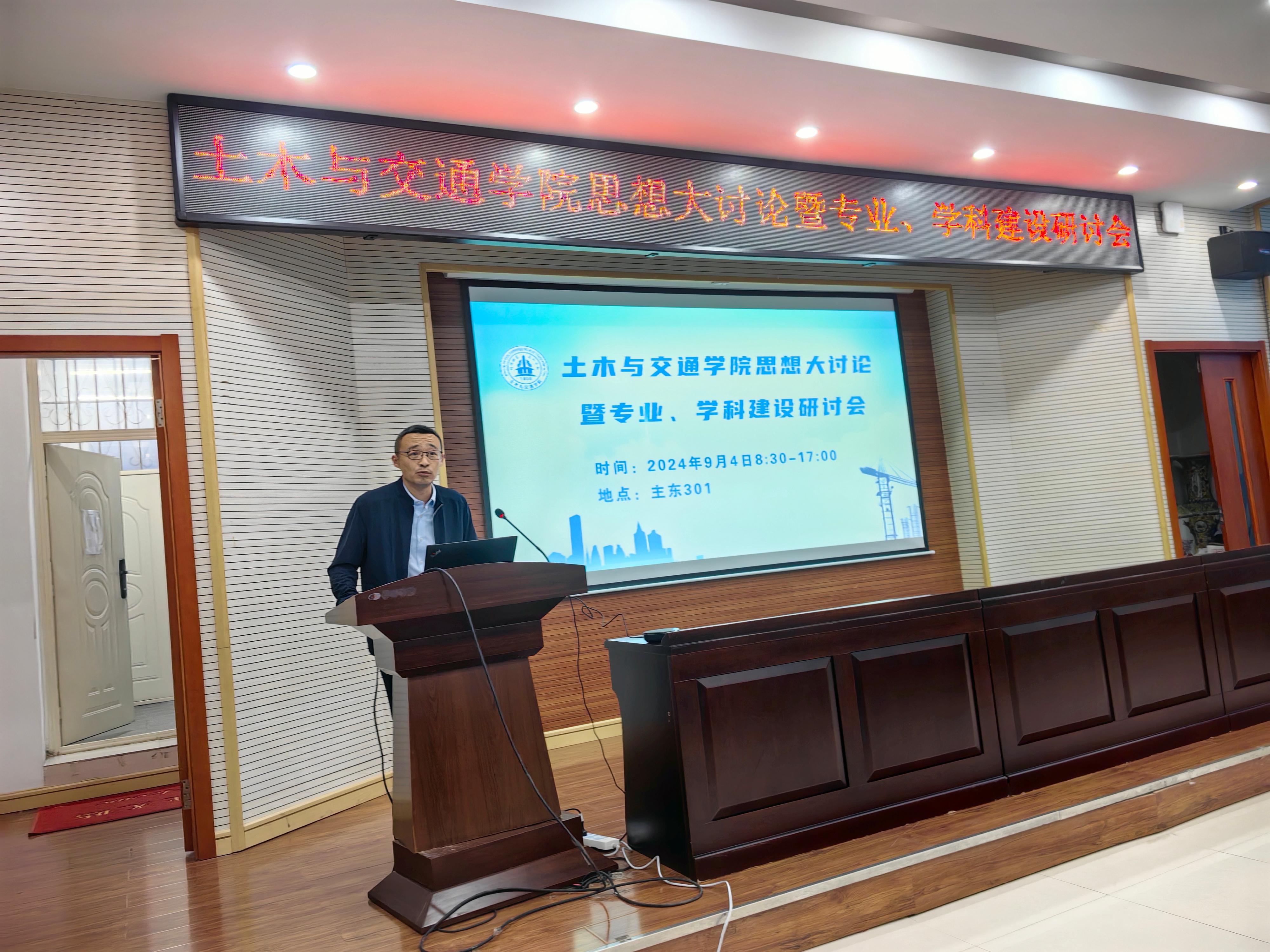 会议分两个阶段进行,上午召开专业建设研讨会,由教学副院长张文会同志主持。各专业教研室主任分别就专业建设相关内容进行汇报,包括“新形势下土木工程专业的建设思考”、“筑基未来,强化国际视野—土交学院桥梁教研室建设研讨报告”、“土木工程专业(建筑工程方向)的升级改造探讨”、“浅淡新质生产力和新工科背景下的土木工程专业(岩土与地下工程方向)发展途径”、“在细分领域发力,打造国际工程法律人才培养基地”、“新工科背景下东林建环专业发展研讨总结与汇报”、“交通工程专业建设规划”、“推进国家一流专业建设 培养高水平交通运输人才”、“智能建造与智慧交通专业建设规划”、“提升力学课程质量,助力工科专业发展”、“现代测绘技术发展与测量课程改革建设”等议题。汇报过程中,宋吉红、谢启芳等同志和专业教师分别就教师队伍建设、社会需求与人才培养差距解决办法等方面与专业和教研室主任进行了交流讨论。
