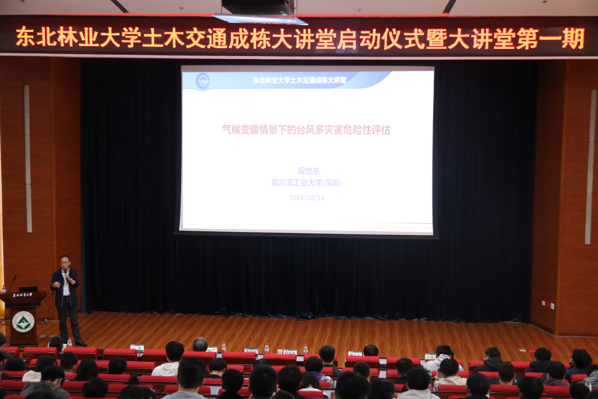 张春雷校长对本次启动仪式进行致辞。在致辞中,张校长对两位教授的到来表示热烈欢迎,肯定了此次土木交通成栋大讲堂的启动,是贯彻落实党的二十届三中全会精神以及习近平总书记在黑龙江考察时提出的“东北振兴”战略目标的具体行动,对建立高水平的教师团队及人才培养具有重大意义。同时也对大讲堂提出了三点建议:一是要要深入学术交流,培养更多人才,二是要加强院校合作,打造更高平台,三是要立足东北振兴,彰显教育担当。