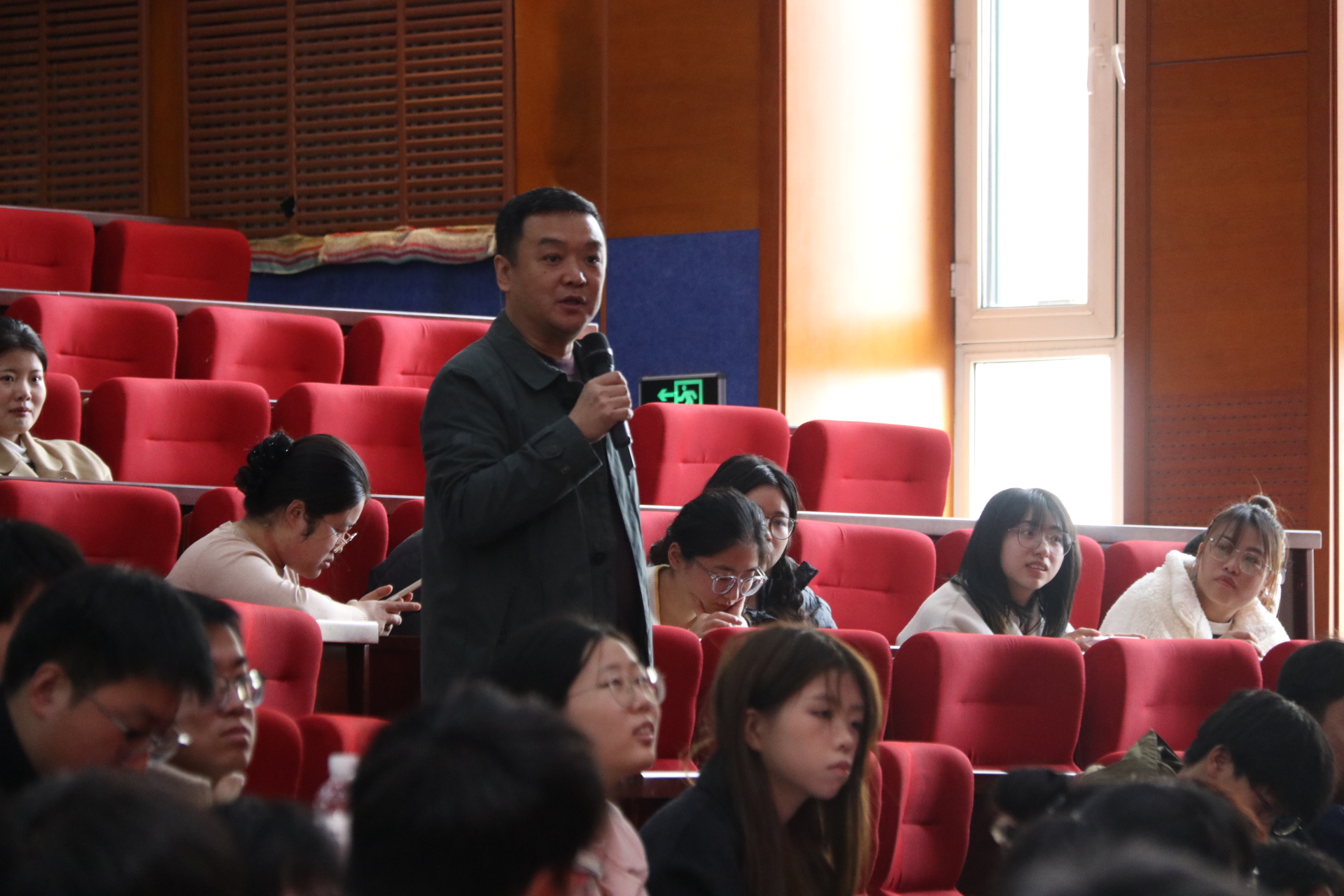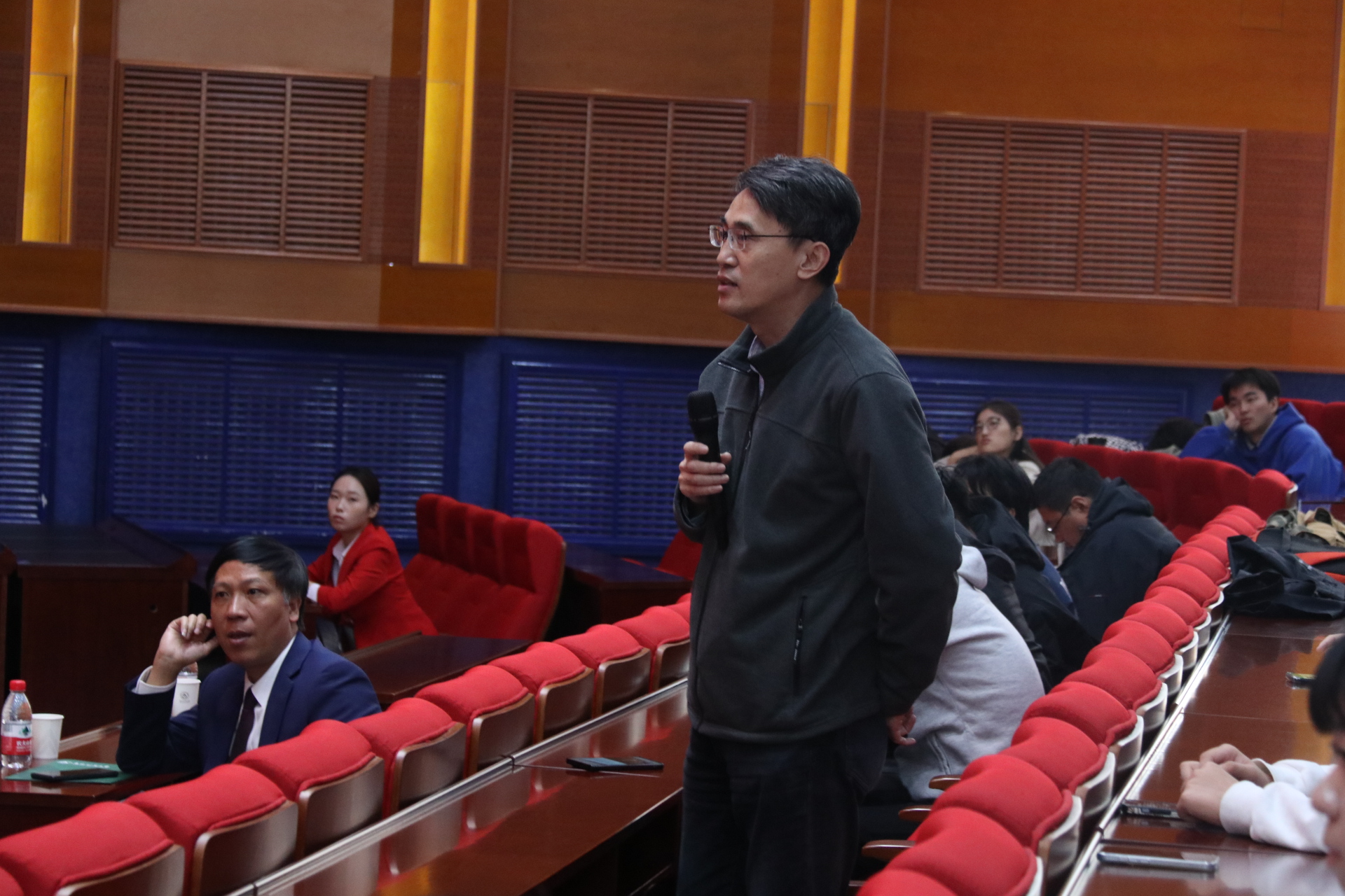 在两位教授的讲解过后,张力滨老师与李国东老师分别针对面对台风危害在工程中应注意的应对措施及如何将房屋建设与危害图进行统一这两方面的问题向两位教授请教。两位教授也针对具体问题进行了解答,不仅解答了两位老师的疑惑,也激发了在场同学们的讨论与思考。