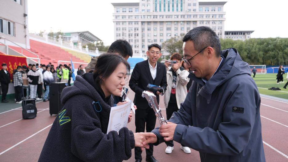 随后,学院领导班子成员分别为在运动会中表现出色的六支队伍颁发奖项。这些荣誉不仅是对学生们努力的肯定,更是激励他们在未来的学习和生活中继续拼搏,勇敢追求自己的梦想。