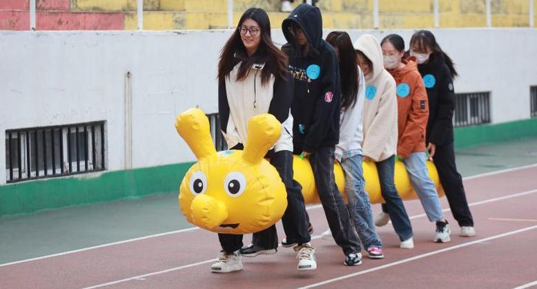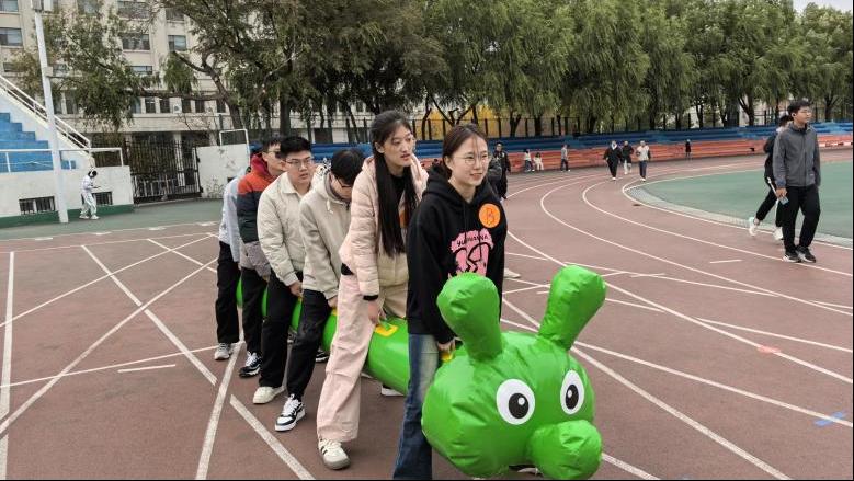 学生组的“毛毛虫竞速”项目,如烈焰般燃烧了队伍间的竞技战火,将比赛推向沸点!有的队伍步伐稳健,毛毛虫如同一条在草地上悠然前行的巨虫;有的队伍则稍显踉跄,但凭借着团队成员间的默契与坚持,依然奋力向前。天气虽然微凉,却阻挡不了同学们投入竞技的劲头;寒风吹红脸庞,但吹不灭同学们戮力拼搏的热情。