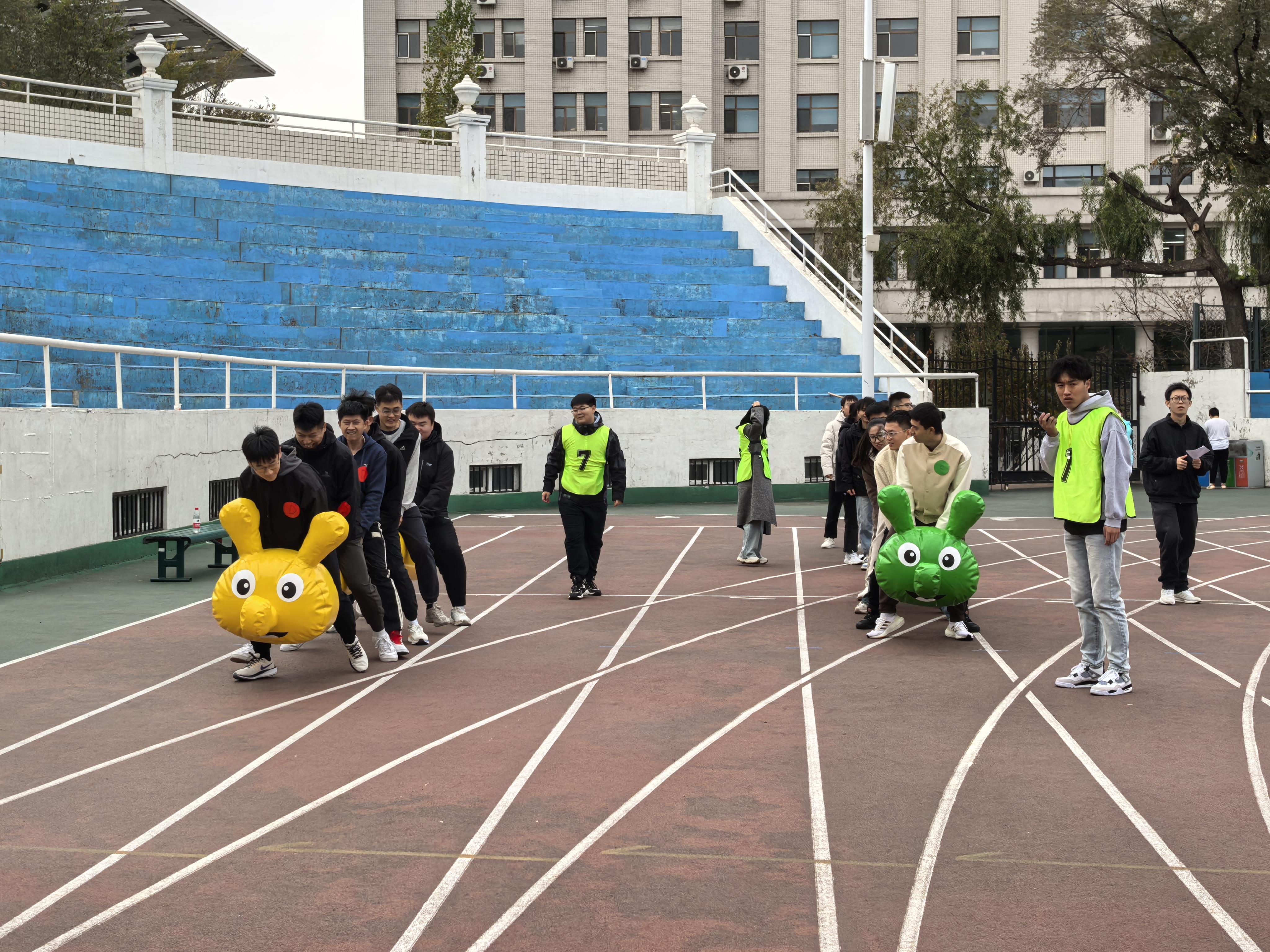教师组的战场上,老师们也积极参与到比赛项目中,为学生们树立榜样。一圈到底和互堵井字格比赛体现了我院老师的配合与默契,南水北调和沙包投准比赛则彰显了我院老师的活力与智慧。老师们在赛场上尽情挥洒汗水,享受运动的快乐。他们用实际行动诠释着认真工作、快乐生活的理念,与学生们共同营造出积极向上的校园氛围。