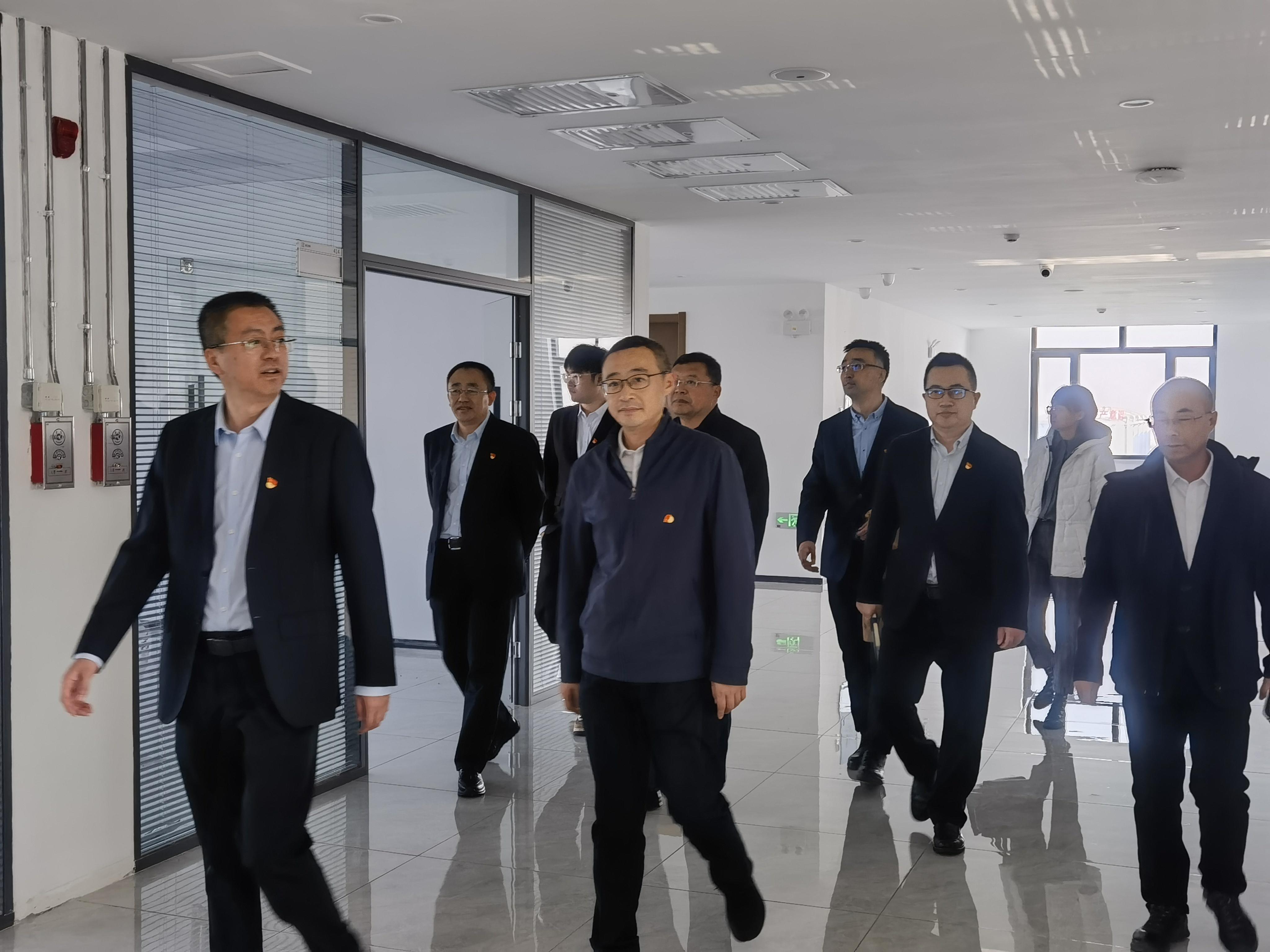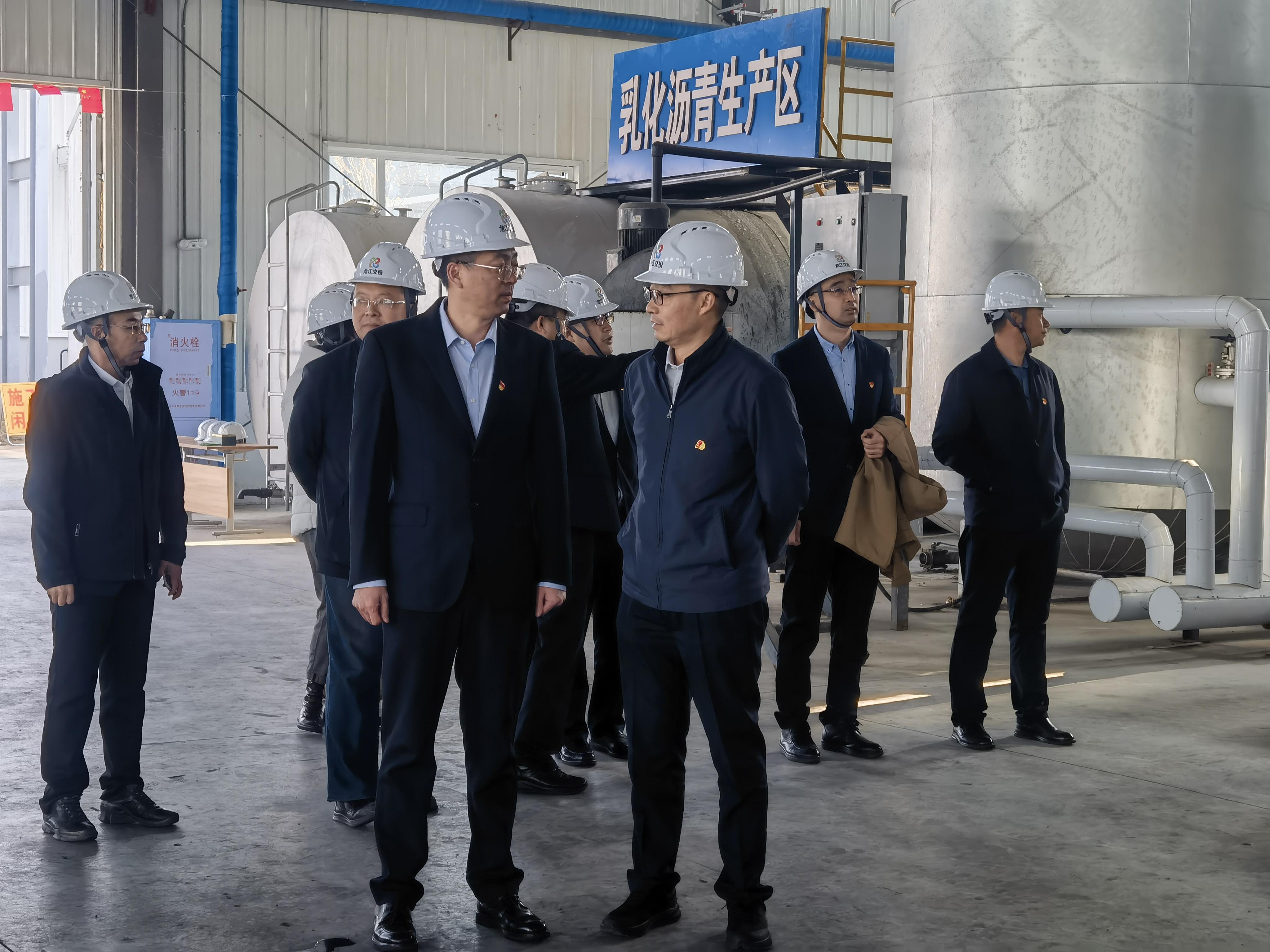 在黑龙江省交投工程科技产业园园区,产业园公司党支部书记王印朋带领于鹏书记一行参观了沥青仓储及特种沥青生产区、高品质混凝土加工及沥青铣刨料精筛分生产区、交安设施研发生产区、科研楼及实验楼,全面介绍了产品先进技术及生产产能等园区优势。