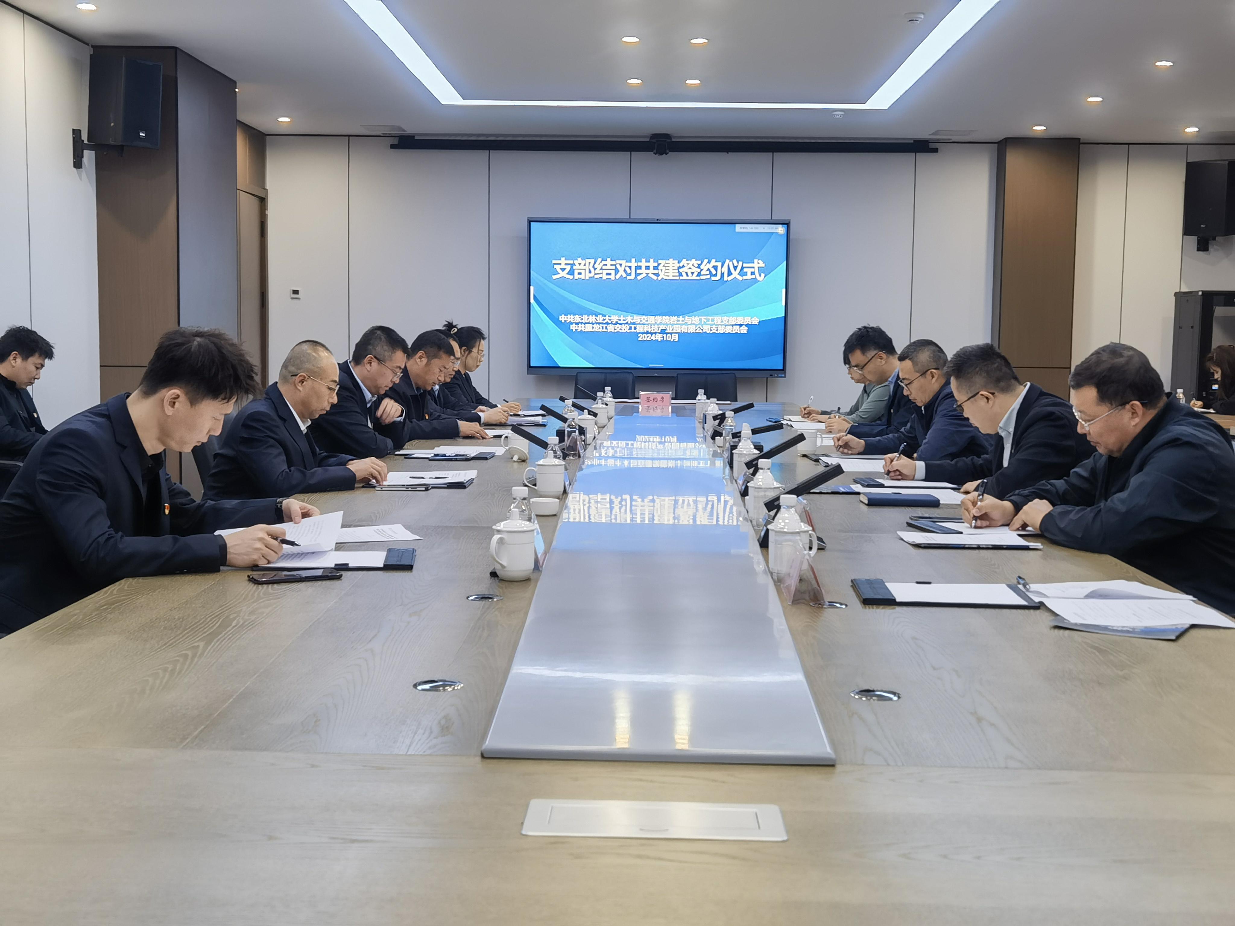 为深入贯彻落实党的二十大和二十届三中全会精神,加强基层党组织建设,推动党建工作与业务工作深度融合,10月30日上午,Betway体育西汉姆联党委书记于鹏带队到黑龙江省交投工程科技产业园开展调研,并参加中共Betway体育西汉姆联岩土与地下工程党支部委员会与中共黑龙江省交投工程科技产业园有限公司支部委员会支部结对共建签约仪式。