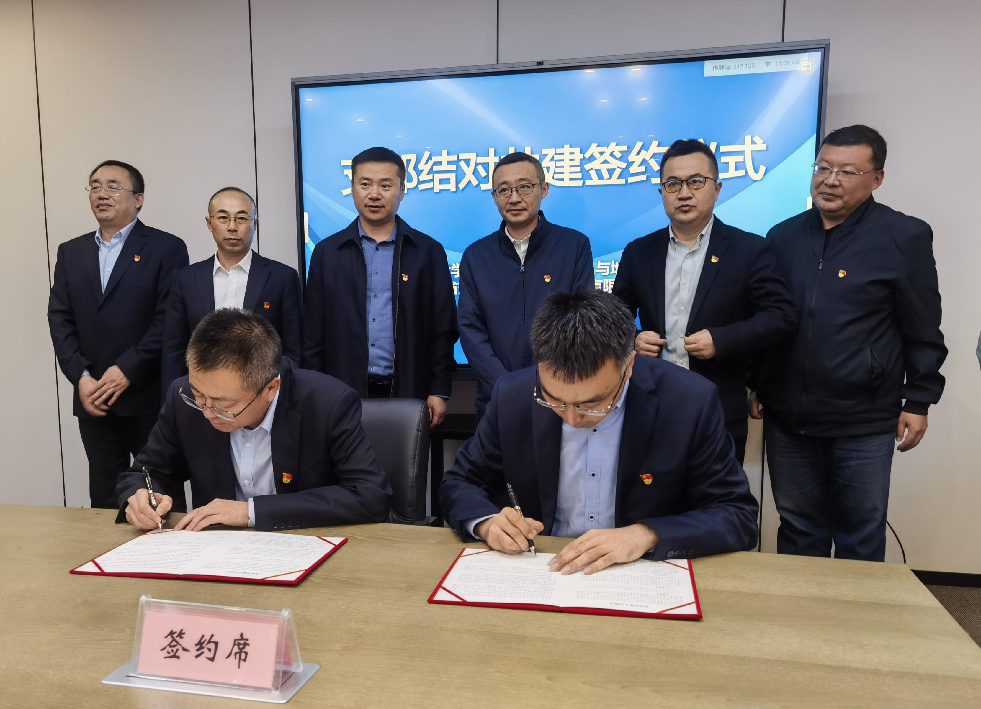 随后,在双方党员代表的见证下,岩土党支部书记李泽闯与产业园党支部书记王印朋共同签署了支部结对共建协议。协议内容包括定期支部联学、业务互通、人才培养、党建资源共享等多个方面,旨在通过具体的共建措施,推动双方党建工作取得实效。
