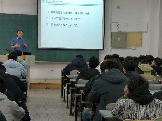 该项活动根据专业方向共进行四场,2024级学生由专业主任韩春鹏教授主讲,2021-2023级学生由各方向主任负责开展,道路与桥梁工程方向由纪泳丞教授与张光洙副教授主讲,建筑工程方向由李国东副教授主讲,岩土与地下工程方向由崔高航副教授主讲。各主讲教师结合目前土木工程行业的发展现状、趋势和社会需求,介绍了我校土木工程专业的特色、优势以及专业定位;并基于目前专业教学体系建设情况、人才培养模式改革、学生创新创业教育情况等,对学生专业学习提出了详细的意见和建议;结合专业近年毕业生的升学、就业及发展情况,对同学们未来的发展和职业规划进行指导。