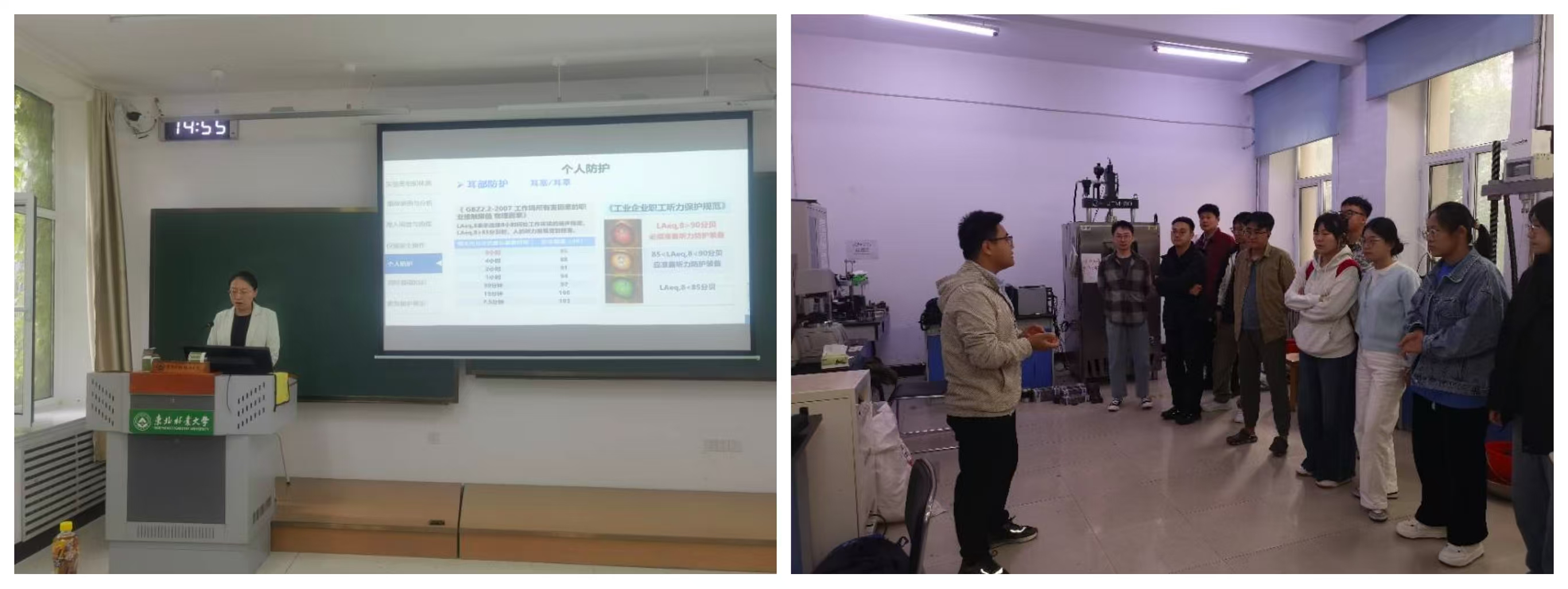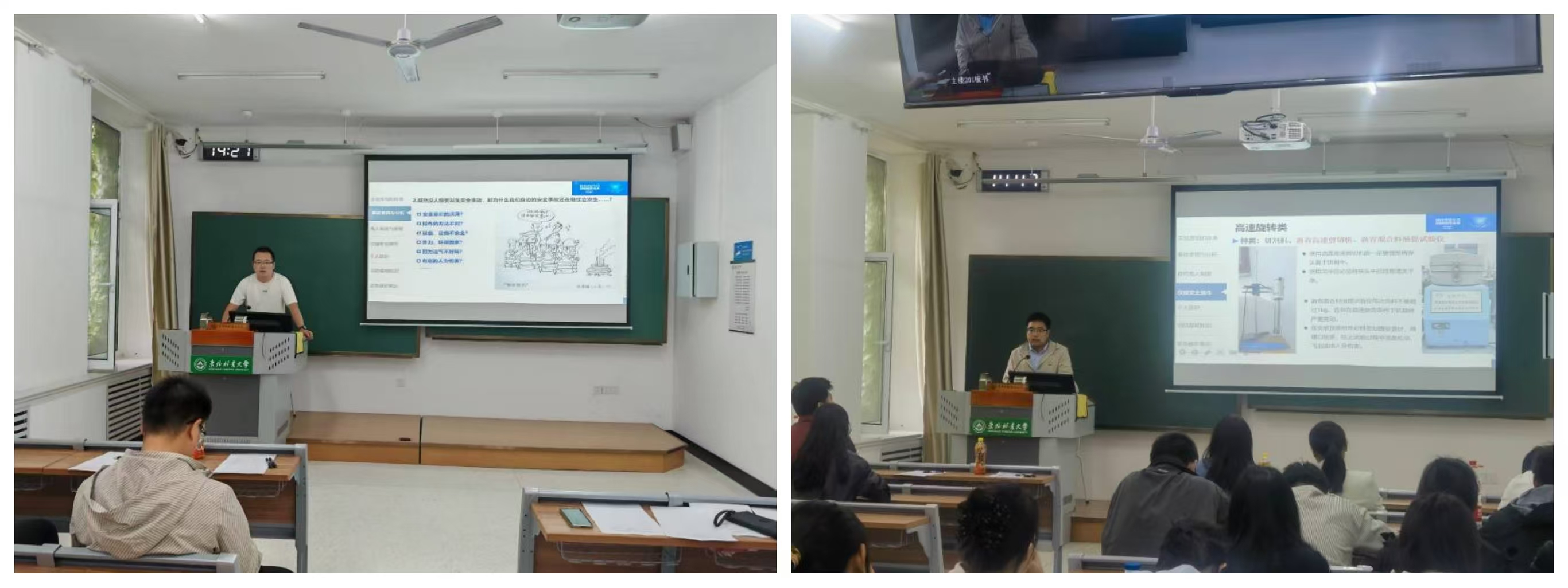 董庆杰老师聚焦于仪器设备的安全操作规范。他结合多位教师长期积累的实践经验,分类别重点讲解了高温加热设备、高速旋转机械、特种实验装置以及高压气瓶等关键设备的正确操作步骤、常见误操作风险及日常维护要点。通过现场图示与要点提示,董老师逐一明确了各类设备的注意事项,真正做到防患于未然。此外,他还专门介绍了大型仪器设备的共享预约流程、使用登记规范及相关管理制度,提升学生对公共平台资源的合理使用能力。