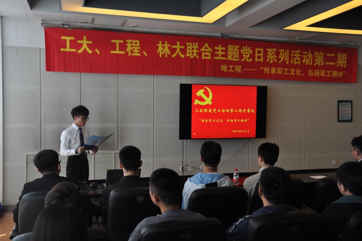 5月21日,由哈尔滨工程大学联合学生党支部主办的第二期联建党日活动成功举办,辅导员张佳源老师、肖玉良老师和学生党员代表参与了本次党日活动,参与活动的还有哈工程联建负责人徐成伟、哈工大土木学院2022级硕士生第6党支部支部书记兼铸魂宣传部部长廖琦及哈工大、哈工程的党员代表。