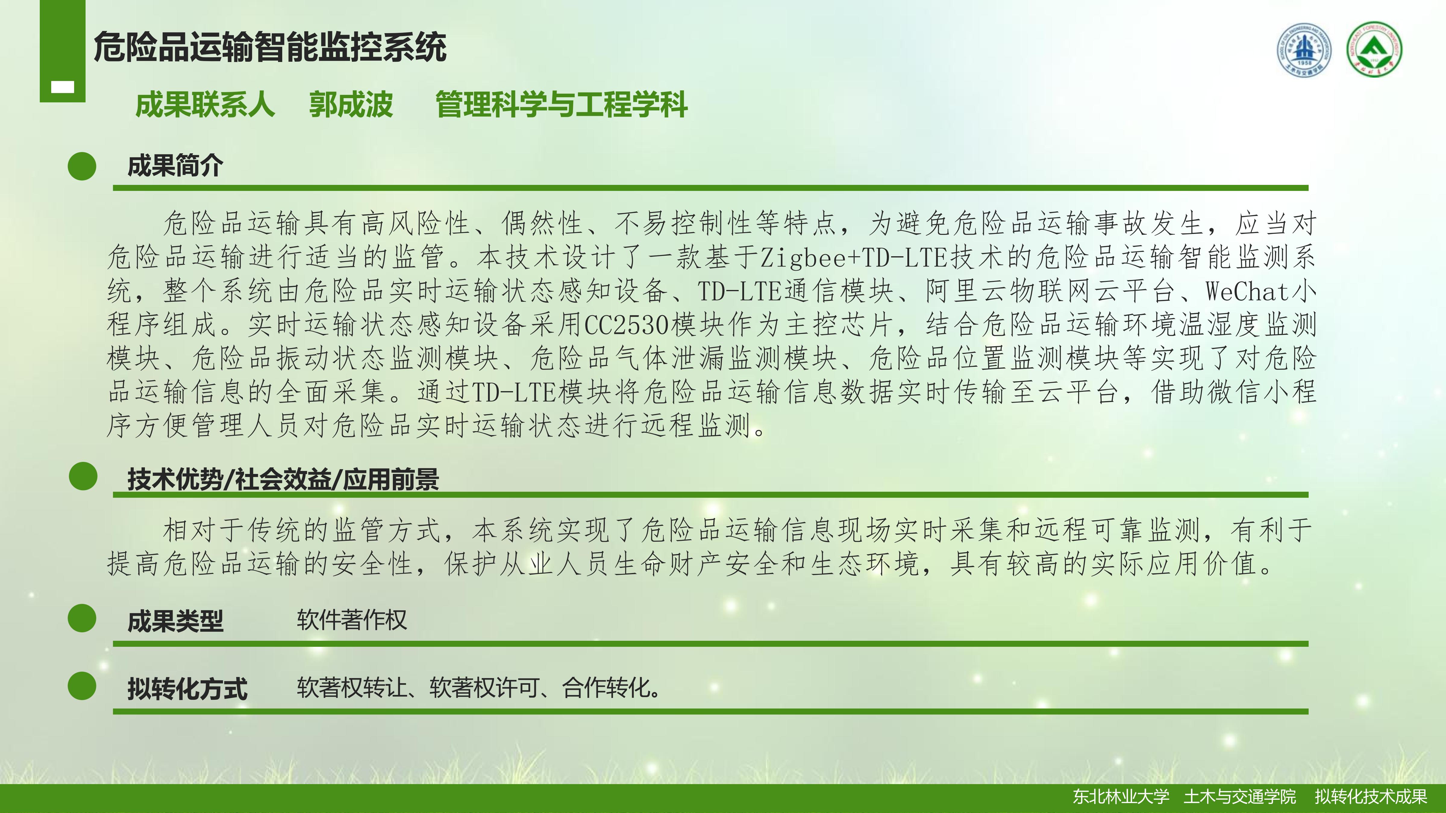管理科学与工程学科拟转化技术成果