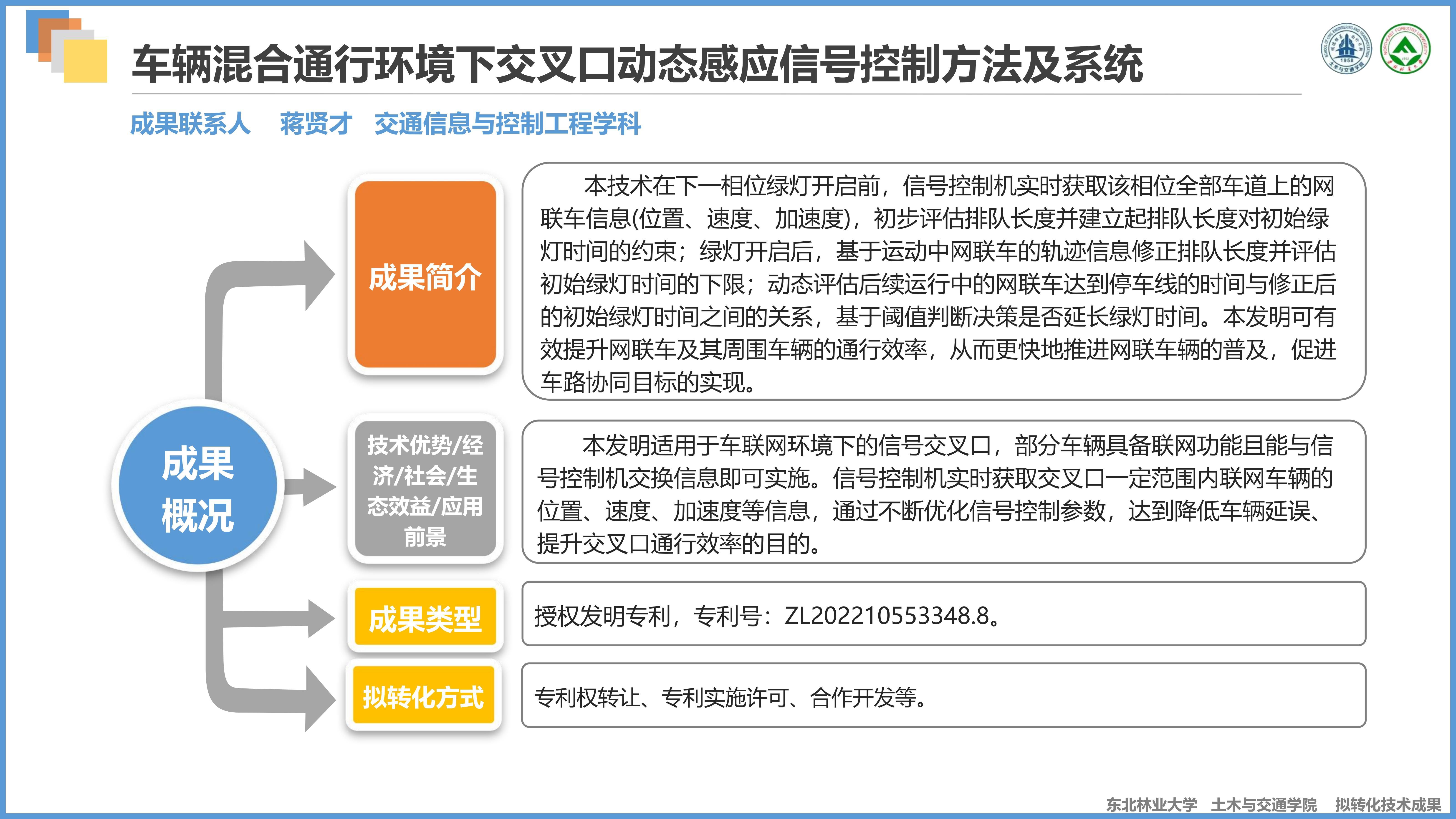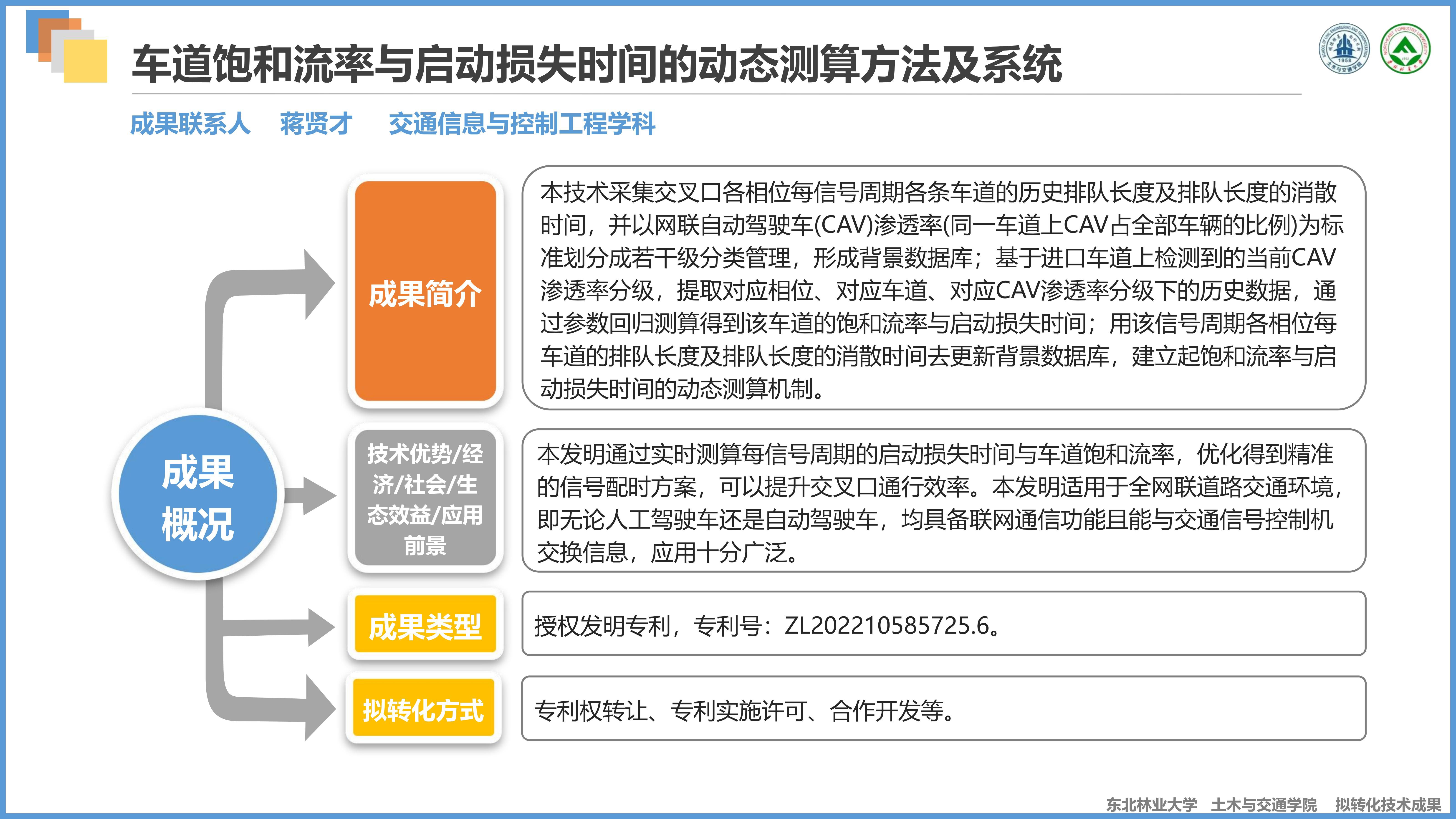 交通信息与控制工程学科拟转化技术成果